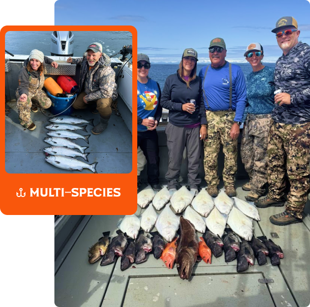 Our Multi-Species Charters are designed to give you the most diverse day of fishing possible. We’ll start with Halibut in deeper water, then move inshore to target Salmon and Rockfish, adjusting the order based on tides and conditions to maximize your chances for success.